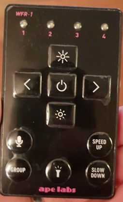 - Direct als je de lampen zelf aanzet, druk je op de remote op de aan-knop. Dan gaat het lampje nr 1 branden, dat betekend dat ie gekoppeld is