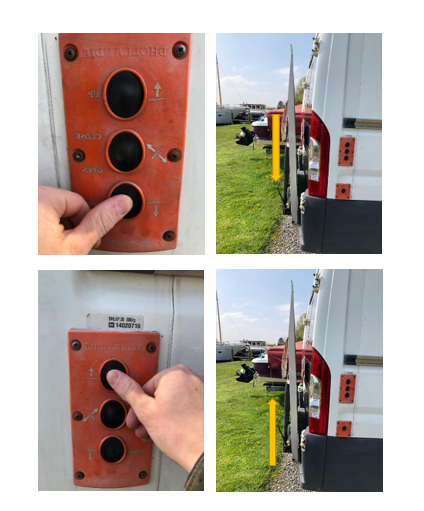 Alle beschrijvingen vanuit het achteraanzicht. Dus: met je gezicht naar de bus toe de laadbak in.
