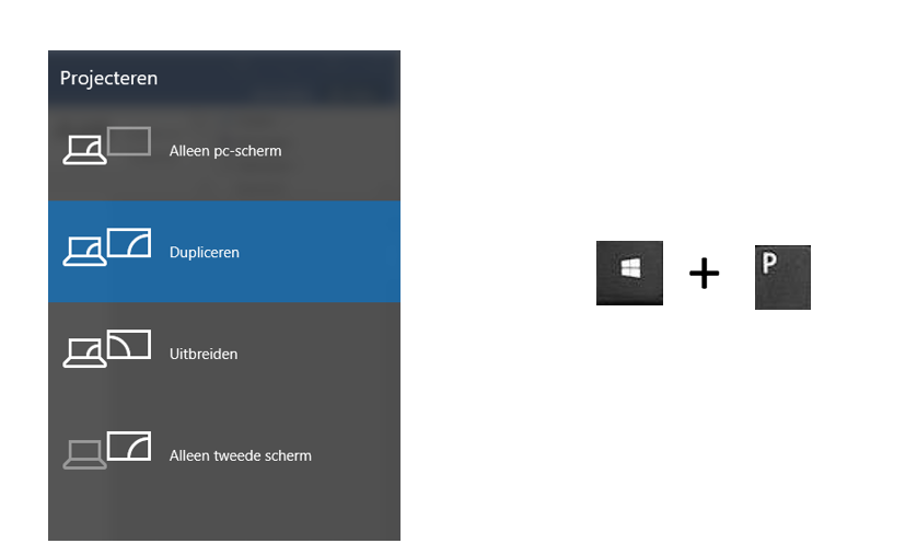 Probeer te dupliceren doormiddel van de Windows toets in te drukken en als volgt de letter P in te drukken.